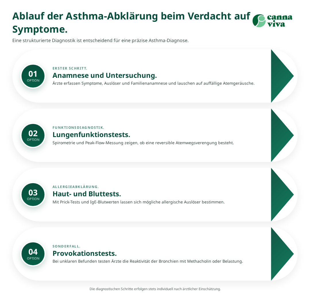 Cannaviva bietet umfassende Unterstützung für Patienten mit Asthma-Symptomen durch spezialisierte telemedizinische Beratung und innovative Therapieansätze. Unsere erfahrenen Ärzte können eine individuelle Behandlungsstrategie entwickeln, die sowohl konventionelle als auch moderne Therapieoptionen berücksichtigt.