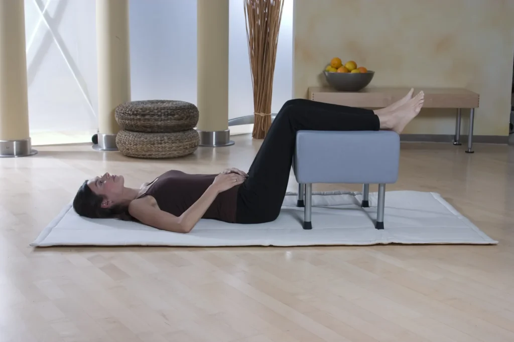 - Pelvic Tilt (Becken kippen): im Rückenlage, Becken langsam neigen, 10–15×, 2–3 Mal täglich; bei Schmerzsteigerung abbrechen.