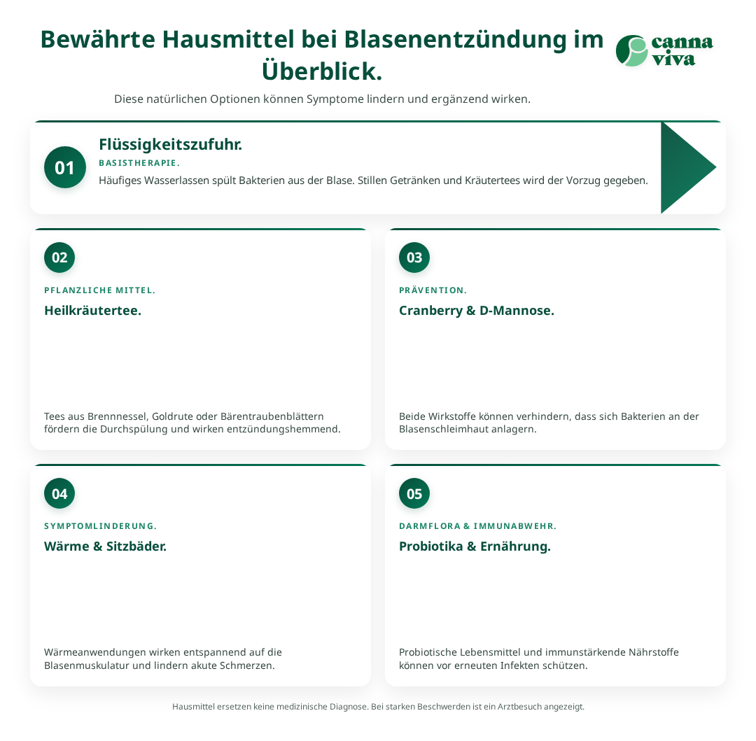 Natürliche Behandlungsmethoden haben sich bei leichten bis mittelschweren Blasenentzündungen als wirksame Unterstützung erwiesen. Die Wirksamkeit dieser Hausmittel beruht auf verschiedenen Mechanismen: antibakterielle Eigenschaften, Spülwirkung der Harnwege, entzündungshemmende Effekte und Stärkung der körpereigenen Abwehrkräfte. Dabei ist wichtig zu verstehen, dass Hausmittel eine ärztliche Behandlung ergänzen, aber bei schweren Infektionen nicht ersetzen können.
