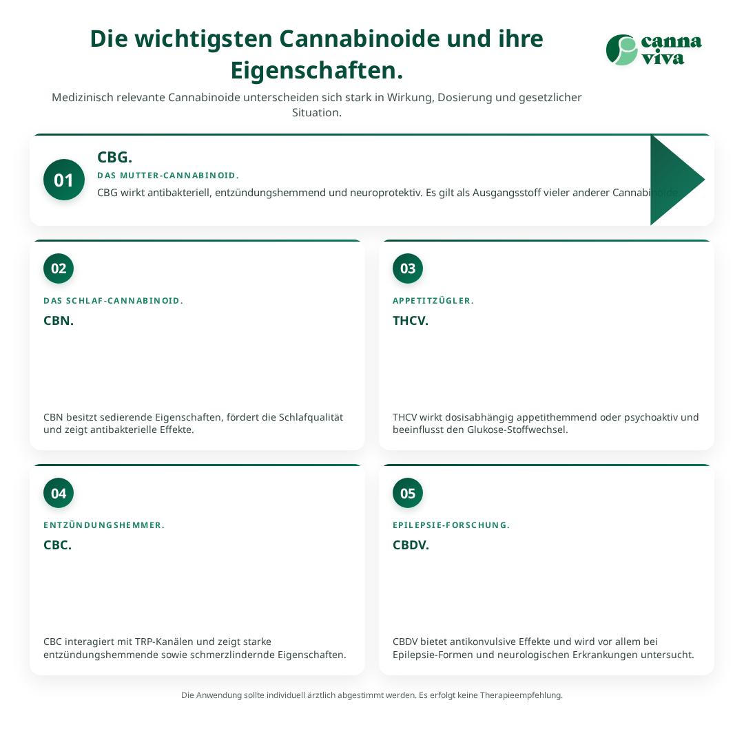 Erleben Sie die Vielfalt von CBG, CBN, THCV & Co. Lassen Sie sich ärztlich beraten, ob Cannabinoide Ihre Beschwerden lindern können.