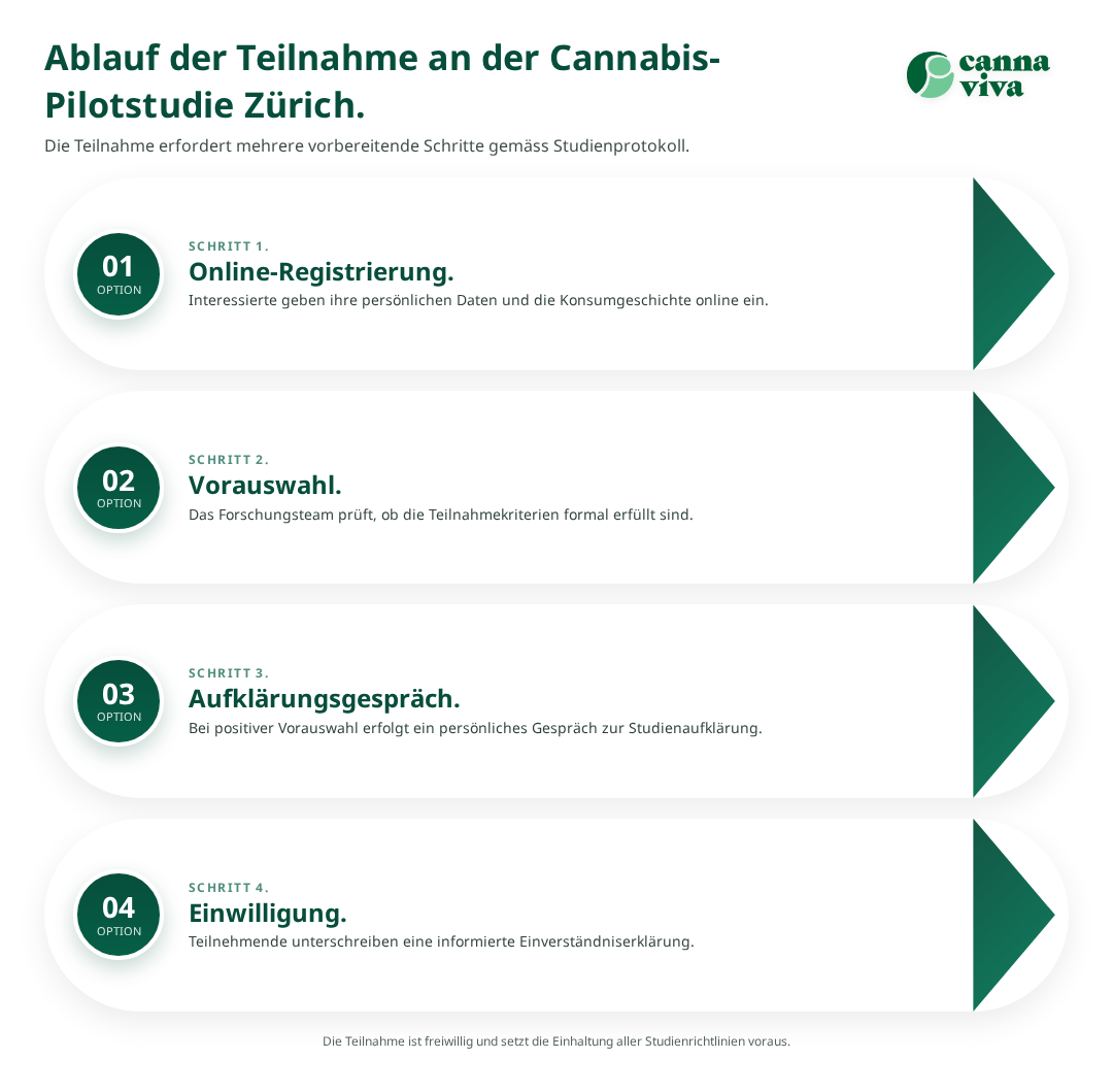 Die Cannabis-Pilotstudie in Zürich folgt einem strengen wissenschaftlichen Protokoll, das sowohl die Sicherheit der Teilnehmenden als auch die Qualität der Forschungsergebnisse gewährleistet. Der Studienablauf ist in verschiedene Phasen gegliedert, die eine umfassende Datenerhebung ermöglichen.