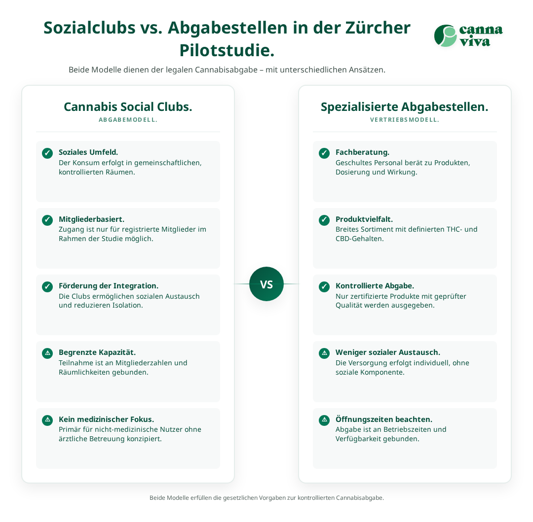 Ein innovatives Element der Zürcher Cannabis-Pilotstudie ist die Integration von Cannabis Social Clubs als Abgabemodell[3]. Diese Clubs fungieren als gemeinschaftliche Organisationen, in denen sich Mitglieder zusammenschliessen, um gemeinsam Cannabis zu erwerben und zu konsumieren. Das Modell stammt ursprünglich aus Spanien und wurde für die Schweizer Verhältnisse angepasst.