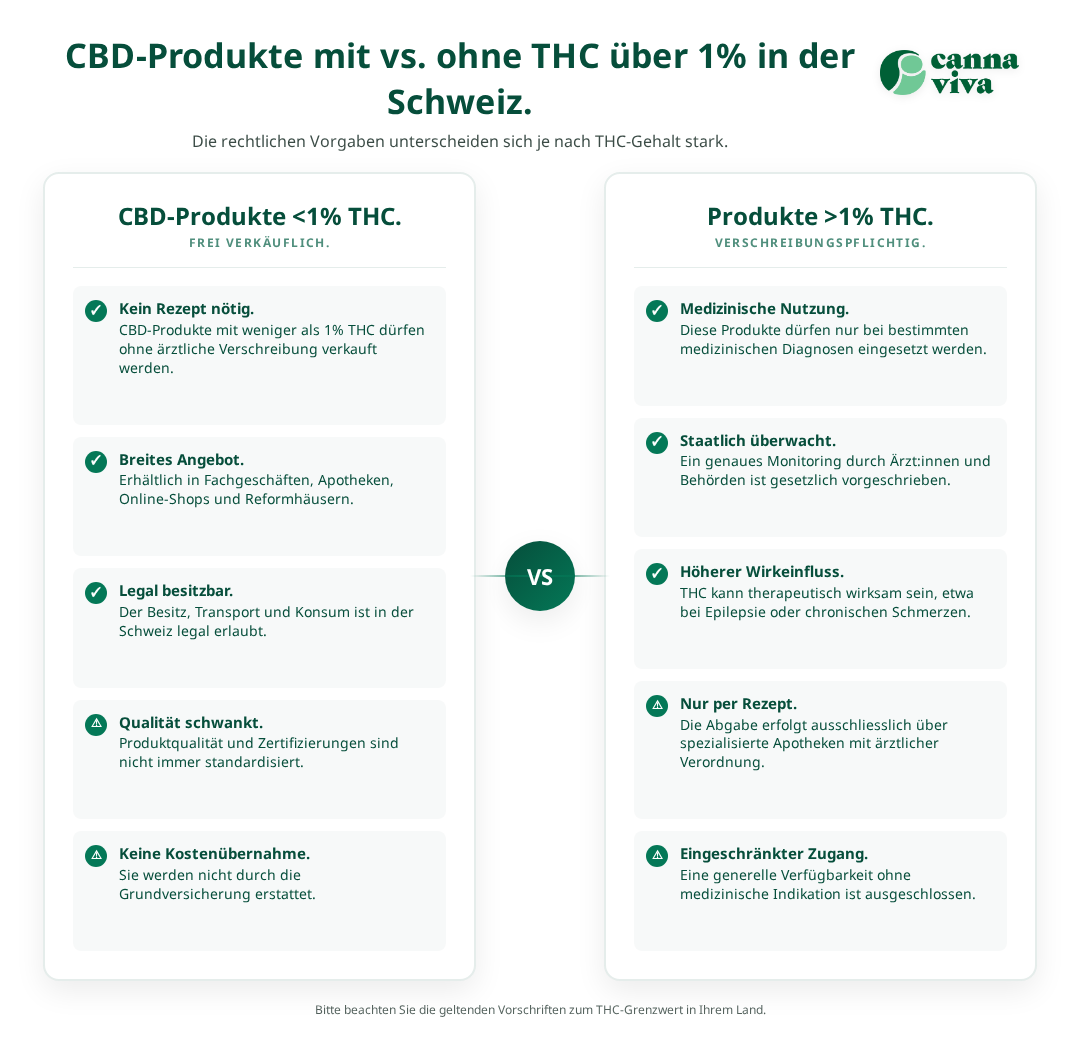 Die Schweiz verfolgt einen besonders liberalen Ansatz bei der CBD-Regulierung. Seit 2011 sind Cannabisprodukte mit einem THC-Gehalt unter 1% von der Betäubungsmittelgesetzgebung ausgenommen. Diese 1%-Grenze ist deutlich höher als in den meisten EU-Ländern, wo meist nur 0,2% THC erlaubt sind.