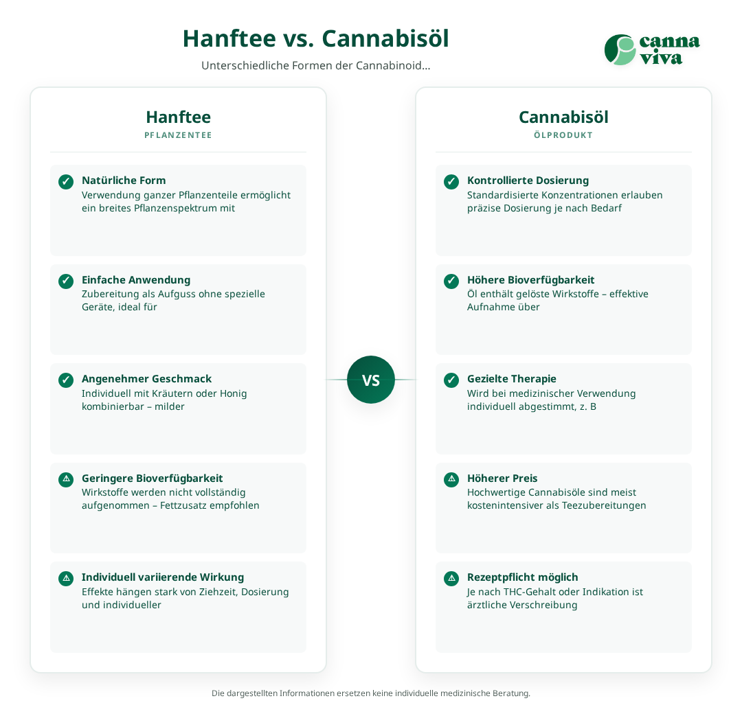 Bei chronischen Beschwerden oder schwerwiegenden gesundheitlichen Problemen sollte Hanftee nicht als Ersatz für eine medizinische Behandlung betrachtet werden. Interessierte Patienten können sich über professionelle Cannabinoid-Therapien informieren, beispielsweise über medizinische Cannabisöle, die in kontrollierter Dosierung verfügbar sind.