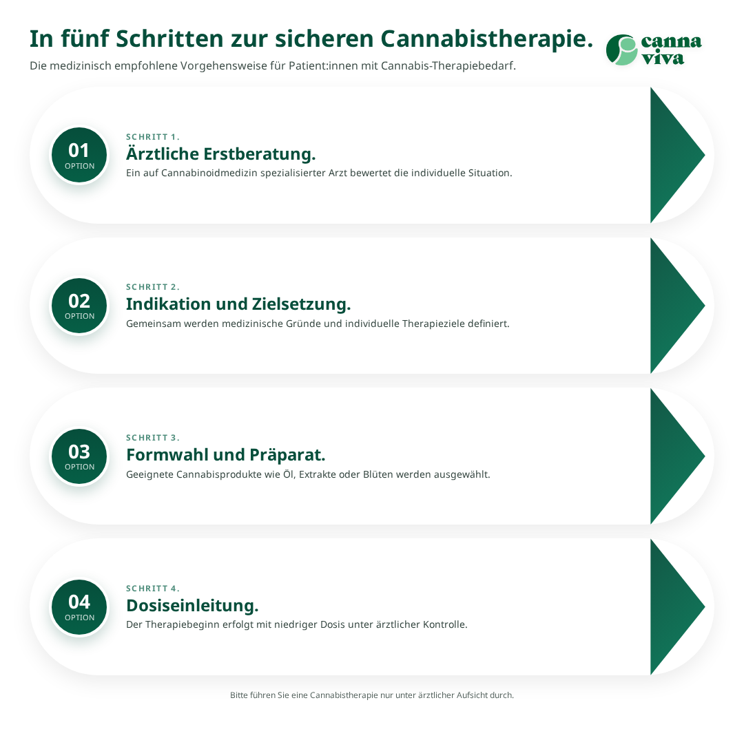 Patient:innen, die von den therapeutischen Eigenschaften von Cannabis profitieren möchten, sollten den Weg über eine qualifizierte medizinische Betreuung wählen. Der erste Schritt ist die Konsultation eines auf Cannabinoidmedizin spezialisierten Arztes, der die individuelle Krankheitssituation bewerten und ein geeignetes Therapiekonzept entwickeln kann.