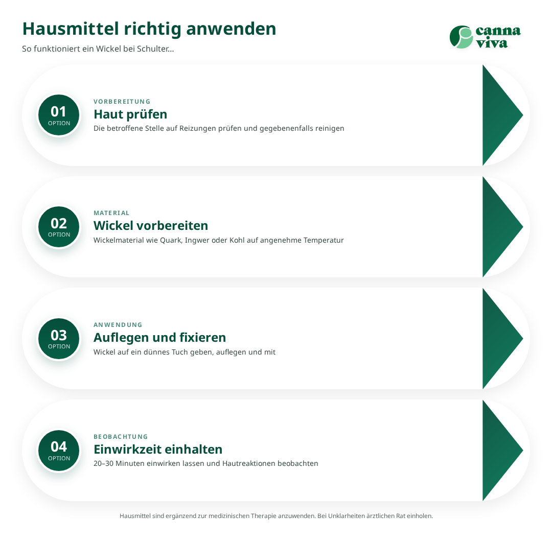 Wickel gehören zu den klassischsten Omas Hausmitteln gegen Schulterschmerzen und haben sich über Jahrhunderte bewährt. Sie kombinieren thermische Effekte mit den Wirkstoffen natürlicher Substanzen und sind besonders bei entzündlichen Beschwerden hilfreich.