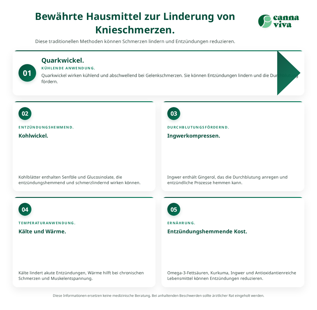 Hausmittel helfen nicht immer ausreichend. Lassen Sie Ihre Knieschmerzen ärztlich beurteilen und prüfen Sie therapeutische Optionen wie Cannabis.