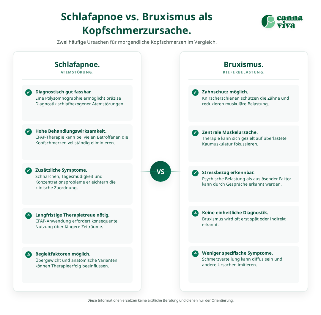 Die häufigsten Mechanismen sind Sauerstoffmangel durch Atemstörungen, muskuläre Verspannungen durch ungünstige Schlafpositionen, Flüssigkeitsverlust während der Nacht und hormonelle Schwankungen im zirkadianen Rhythmus. Diese Faktoren wirken oft zusammen und verstärken sich gegenseitig.