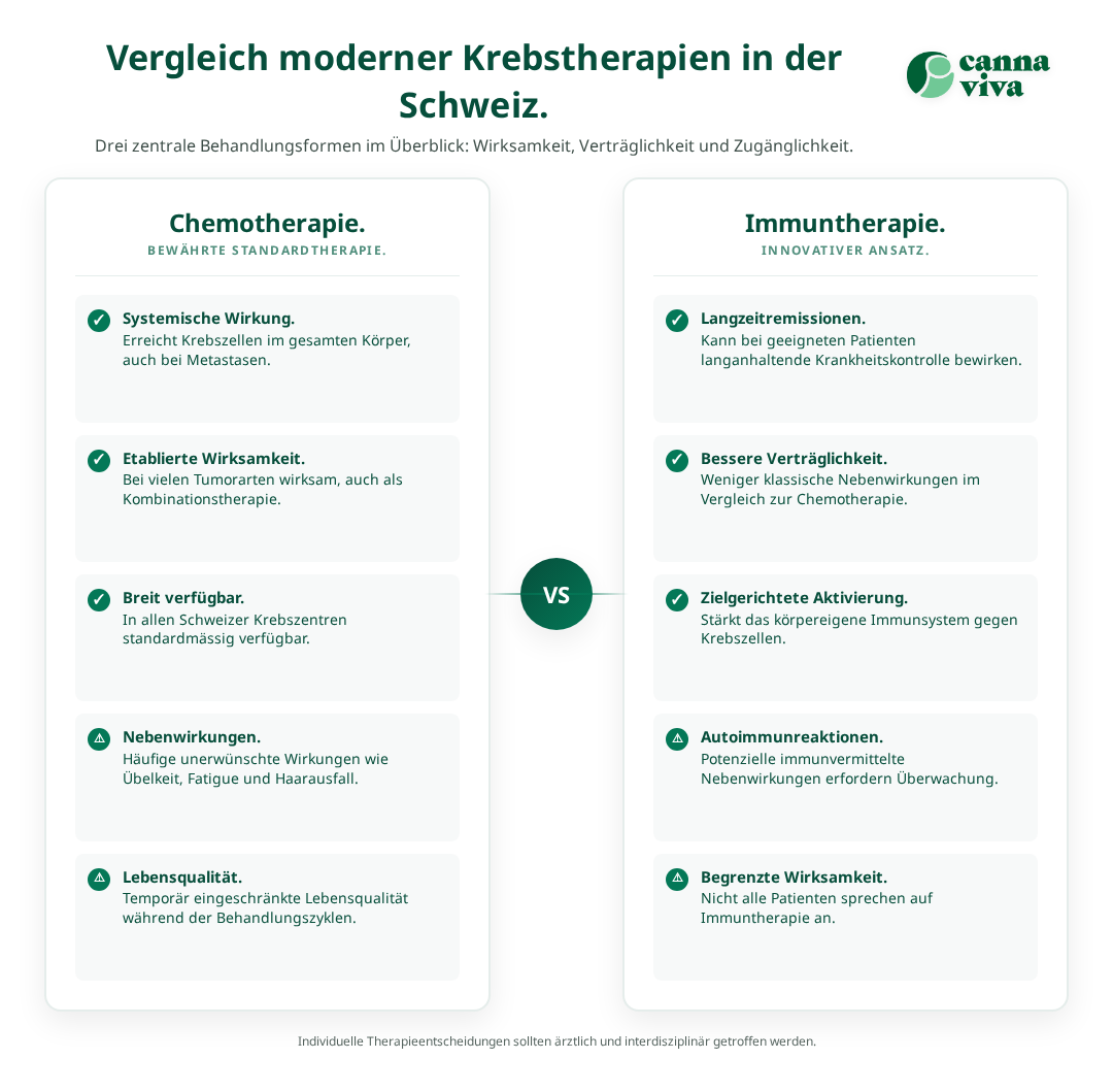 Die Immuntherapie erfordert spezialisierte Kenntnisse und Erfahrungen im Umgang mit immunbedingten Nebenwirkungen. In der Schweiz ist sie in den meisten onkologischen Zentren verfügbar, wobei die Kostenübernahme meist gewährleistet ist.
