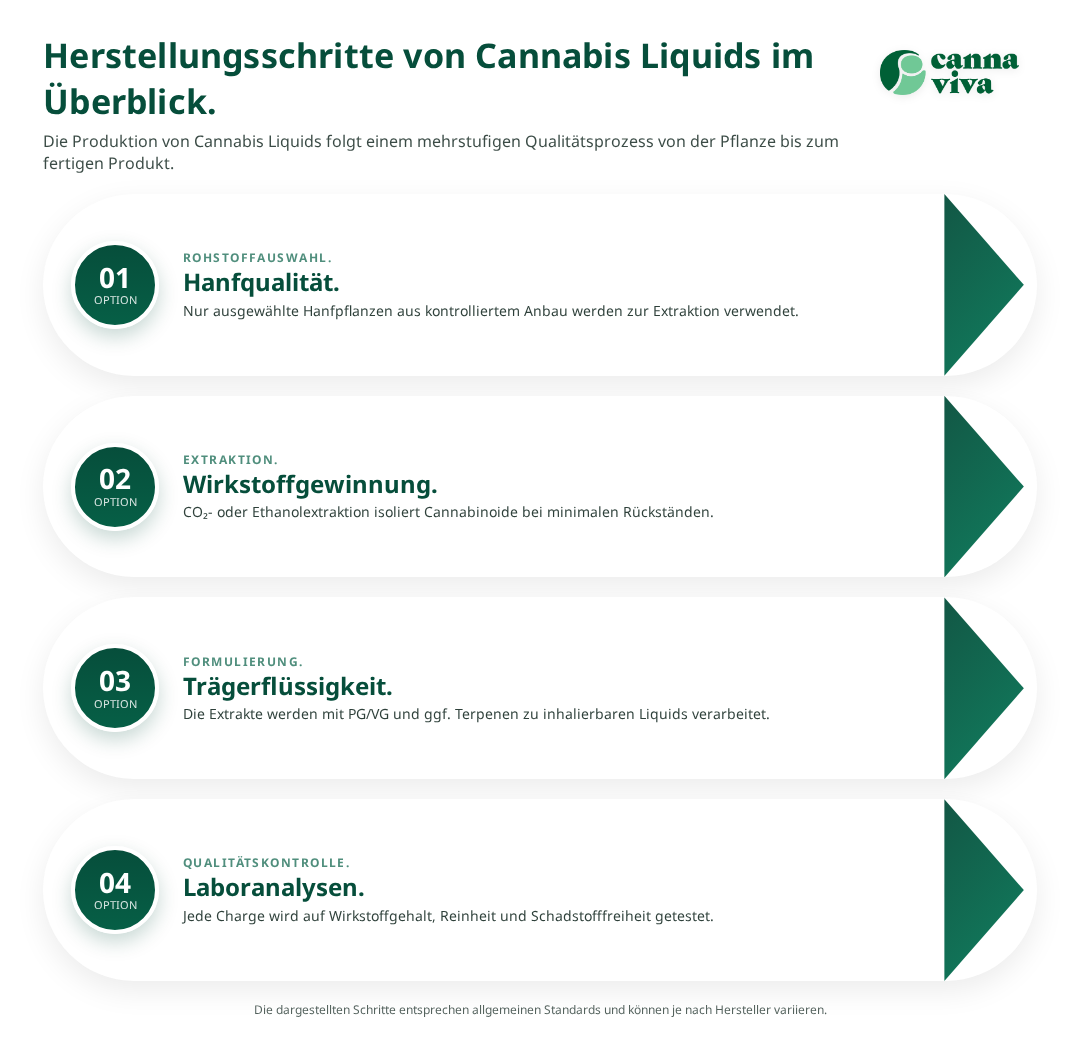 Die Produktion von Cannabis Liquids unterliegt strengen Qualitätsstandards, die eine sichere und wirksame Anwendung gewährleisten. Der Herstellungsprozess beginnt mit der Auswahl hochwertiger Hanfpflanzen, die unter kontrollierten Bedingungen angebaut werden. Die Extraktion der Cannabinoide erfolgt mittels moderner Verfahren wie der überkritischen CO₂-Extraktion oder Ethanol-Destillation.