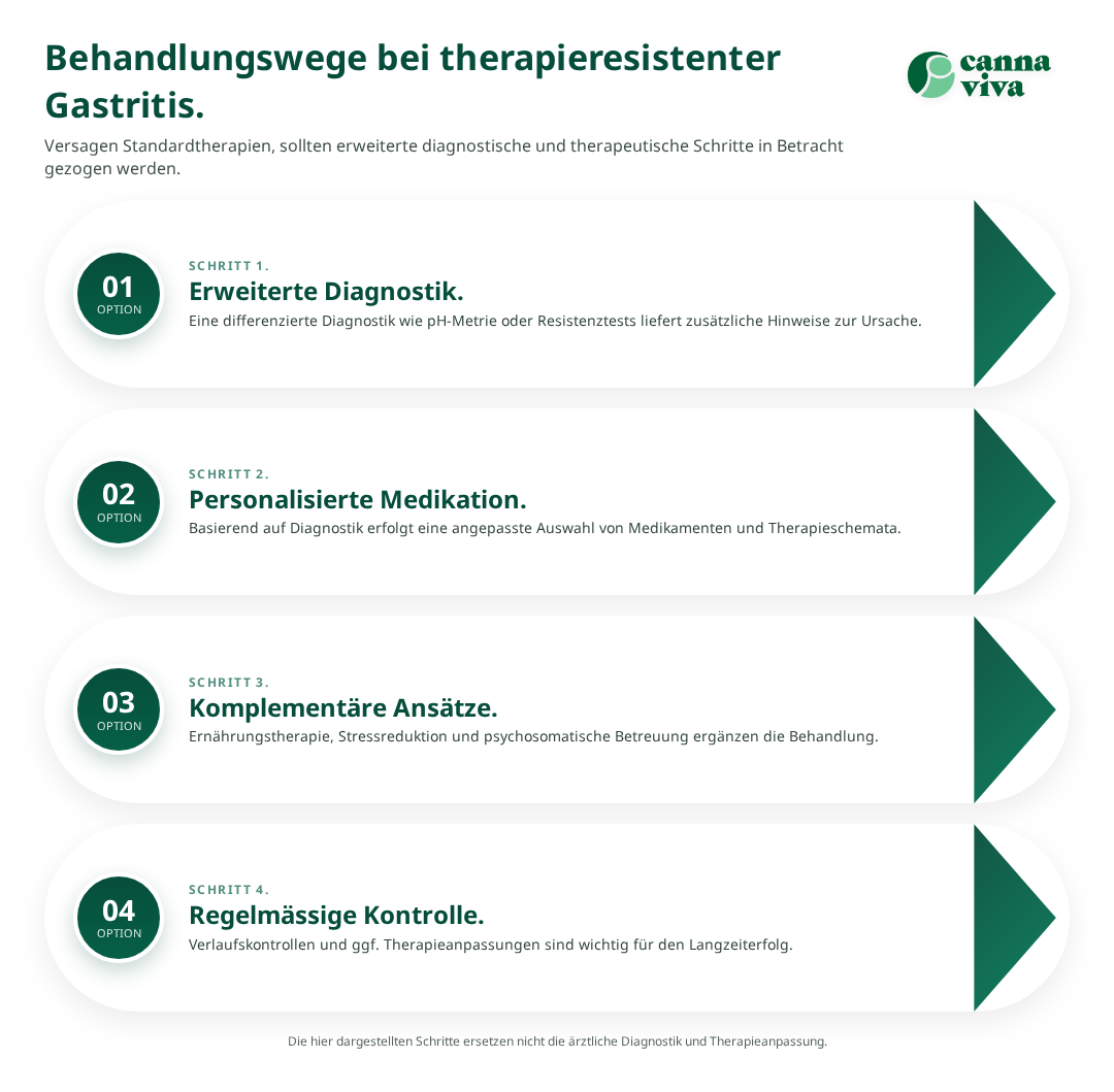 Als spezialisierte Plattform für medizinisches Cannabis bietet Cannaviva umfassende Unterstützung für Patienten mit therapieresistenter chronischer Gastritis. Unser interdisziplinäres Team aus Ärzten und Fachpersonal entwickelt individuelle Behandlungskonzepte.