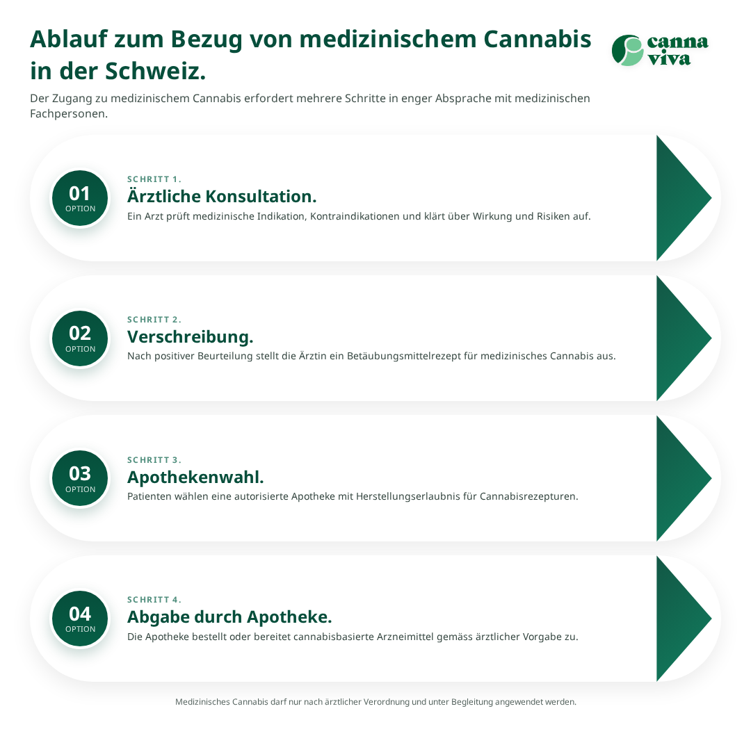 Seit 2022 ist der Zugang zu medizinischem Cannabis in der Schweiz vereinfacht – mit ärztlicher Verschreibung erhalten Sie Therapien direkt in spezialisierten Apotheken. Wir unterstützen Sie beim nächsten Schritt.