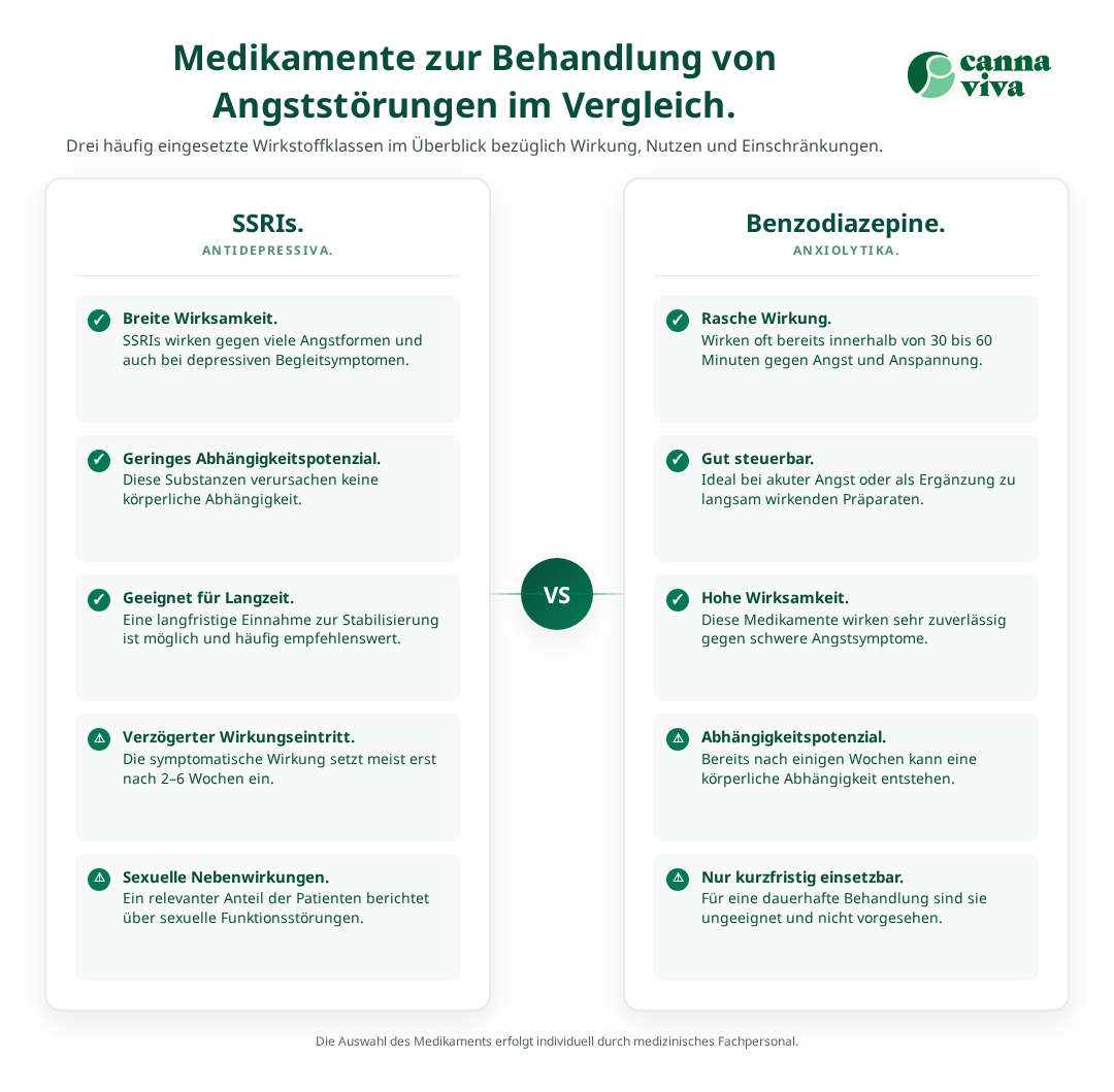 Die medikamentöse Behandlung von Angststörungen und Panikattacken stützt sich auf verschiedene Wirkstoffklassen, die jeweils unterschiedliche Angriffspunkte im Nervensystem haben. Jede Medikamentengruppe bringt spezifische Vor- und Nachteile mit sich, weshalb die Auswahl stets individuell und unter Berücksichtigung der jeweiligen Symptomatik erfolgen sollte.