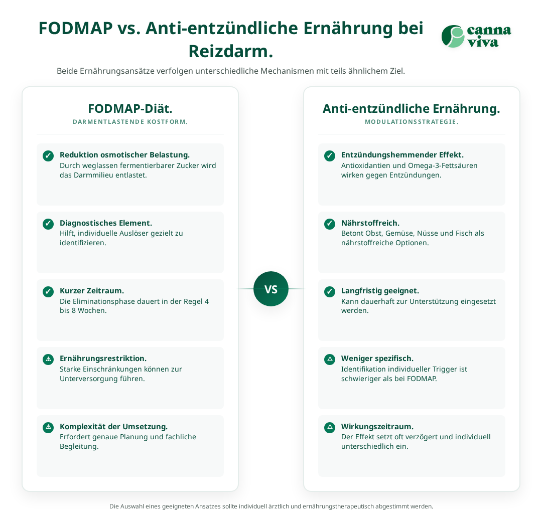 Die Kombination aus FODMAP-Prinzipien und anti-entzündlicher Ernährung kann besonders bei Patienten mit gemischten Symptomen oder zusätzlichen Entzündungszeichen vorteilhaft sein.