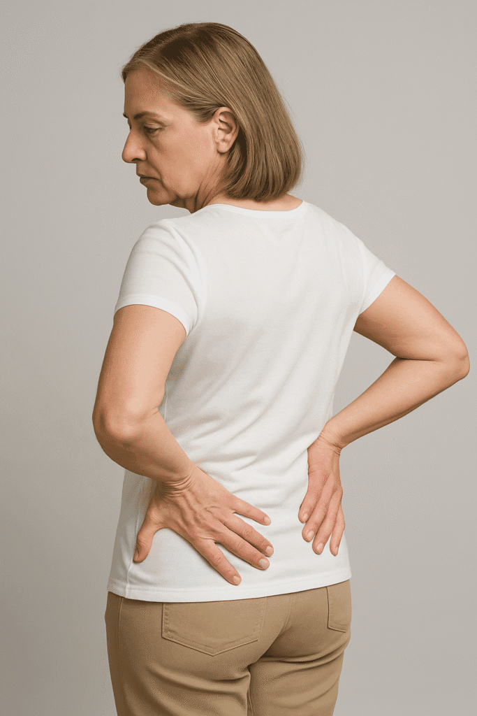 - Kräftigung Gluteus medius: seitliches Beinheben oder Clamshell, 3×10–15