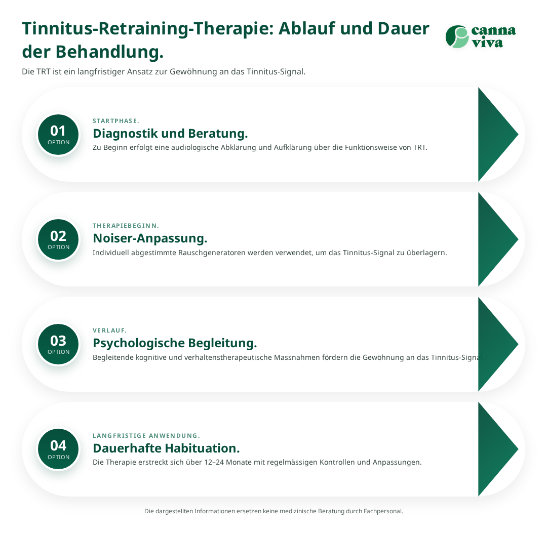 Studien zeigen, dass etwa 80% der Patienten nach 18-24 Monaten TRT eine deutliche Verbesserung ihrer Lebensqualität erfahren. Die verwendeten Noiser-Geräte werden individuell angepasst und erzeugen ein angenehmes, gleichmässiges Rauschen, das das Tinnitus-Signal teilweise überdeckt, ohne es vollständig zu maskieren.