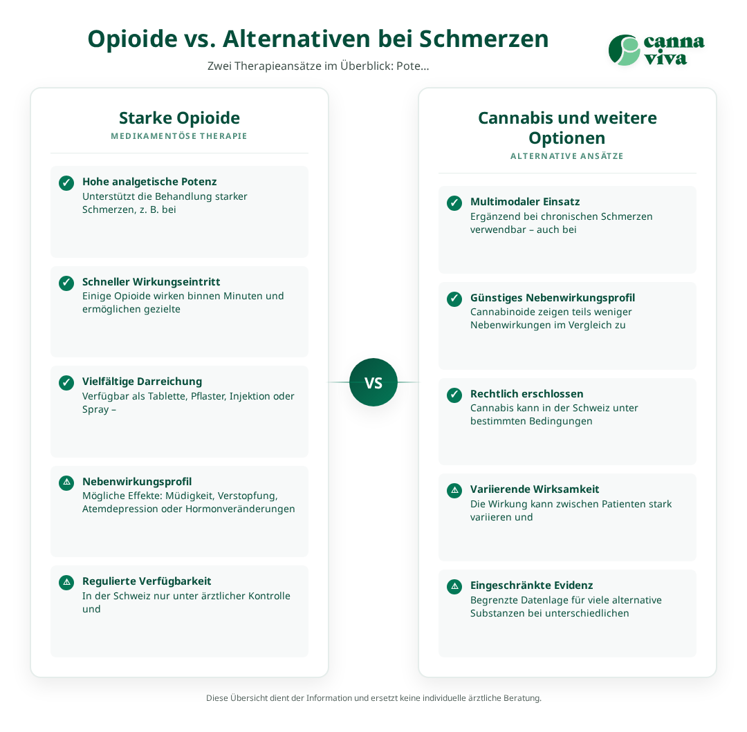 Für Betroffene, die Schwierigkeiten beim Zugang zu konventioneller Schmerztherapie haben, können alternative Behandlungsansätze mit Cannabis eine Option darstellen[4]. Diese sind in der Schweiz unter bestimmten Voraussetzungen legal zugänglich und werden von spezialisierten Ärzten verschrieben.